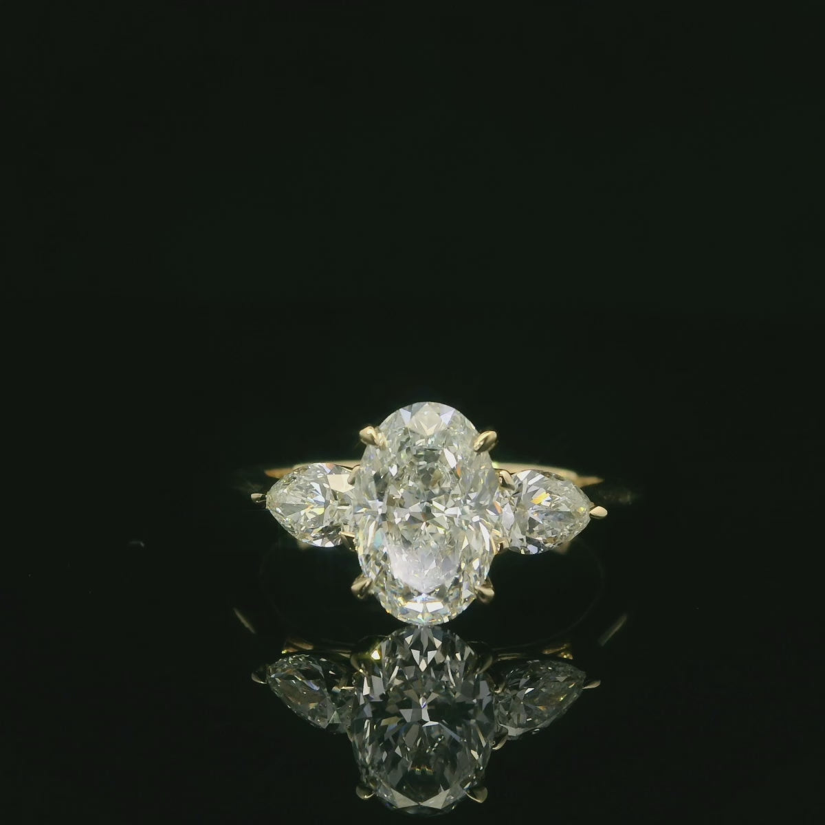 2 Carat Oval Cut with Pear Sidestones Engagement Ring