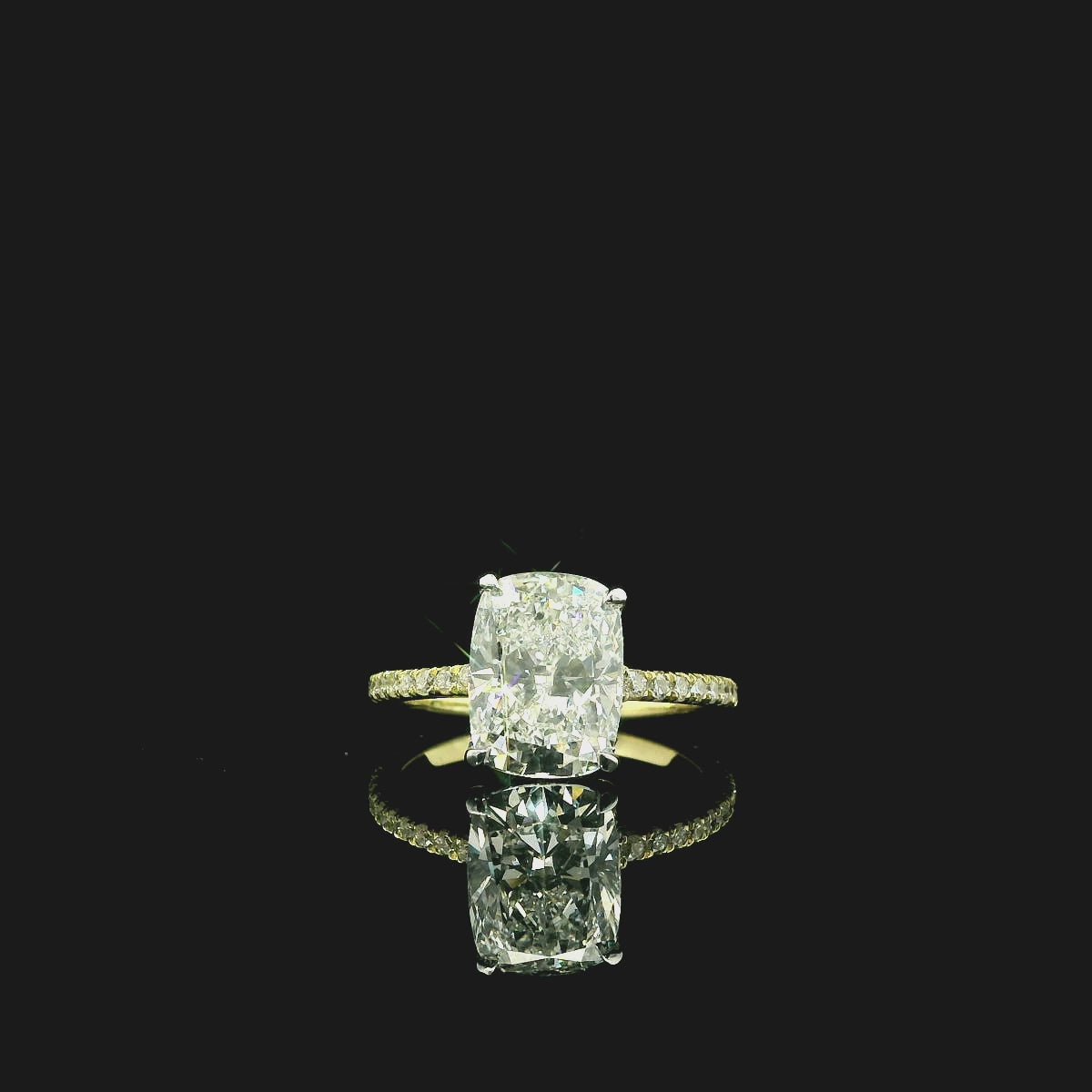 3.5 Carat Cushion Cut with Hidden Halo and Pave Band Engagement Ring