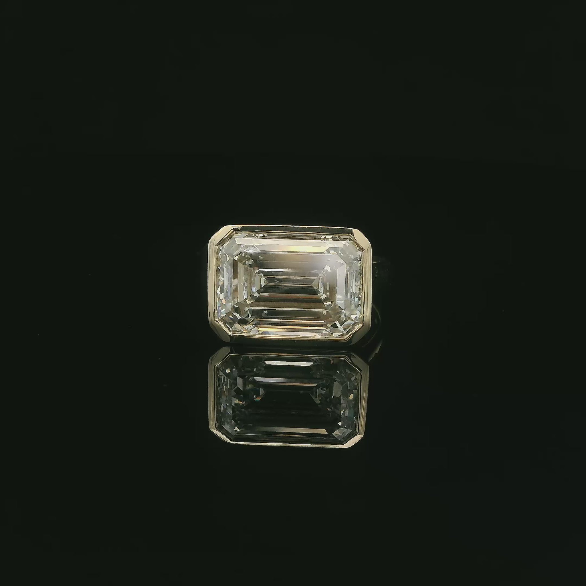8 Carat East to West Bezel Set Emerald Cut Engagement Ring