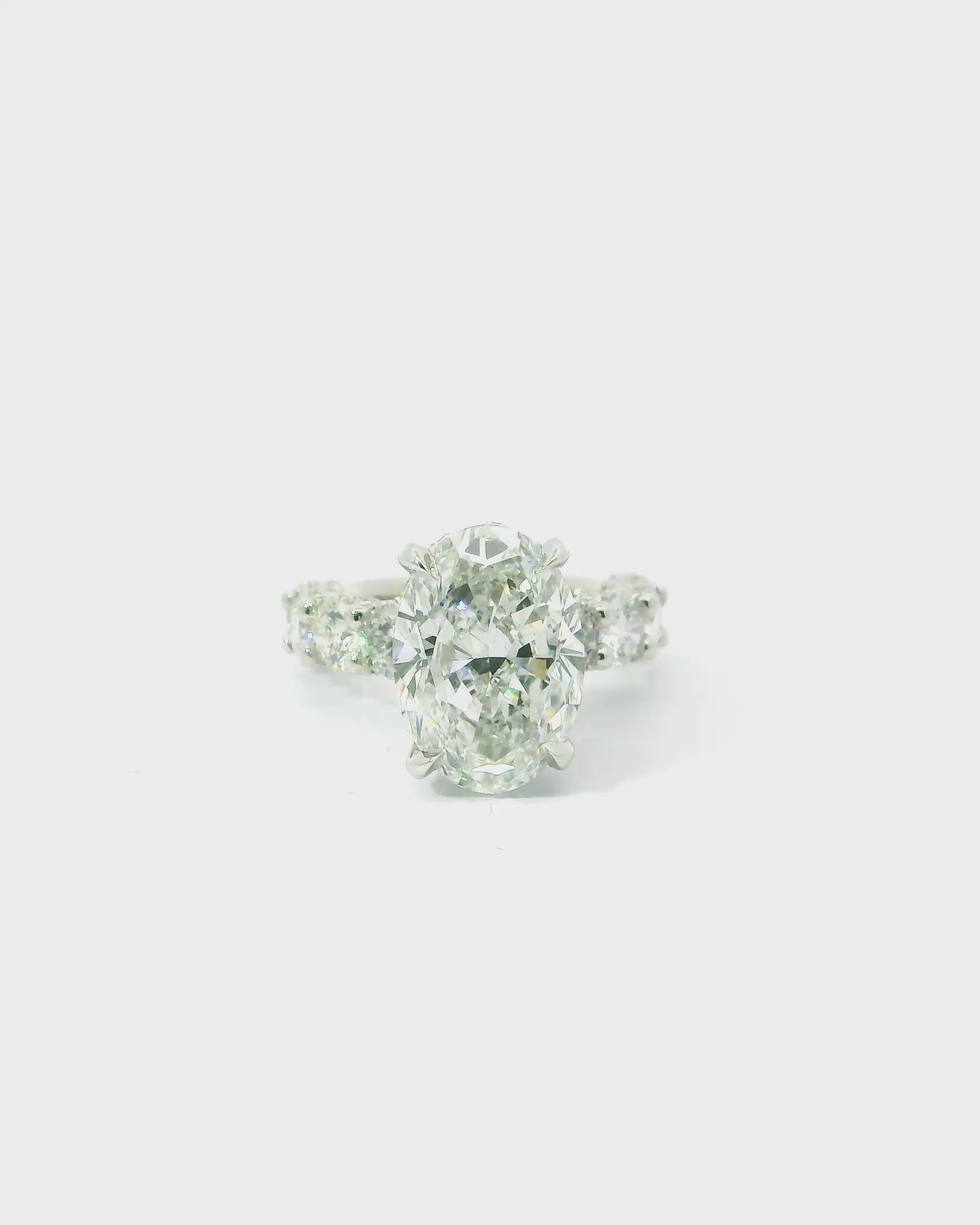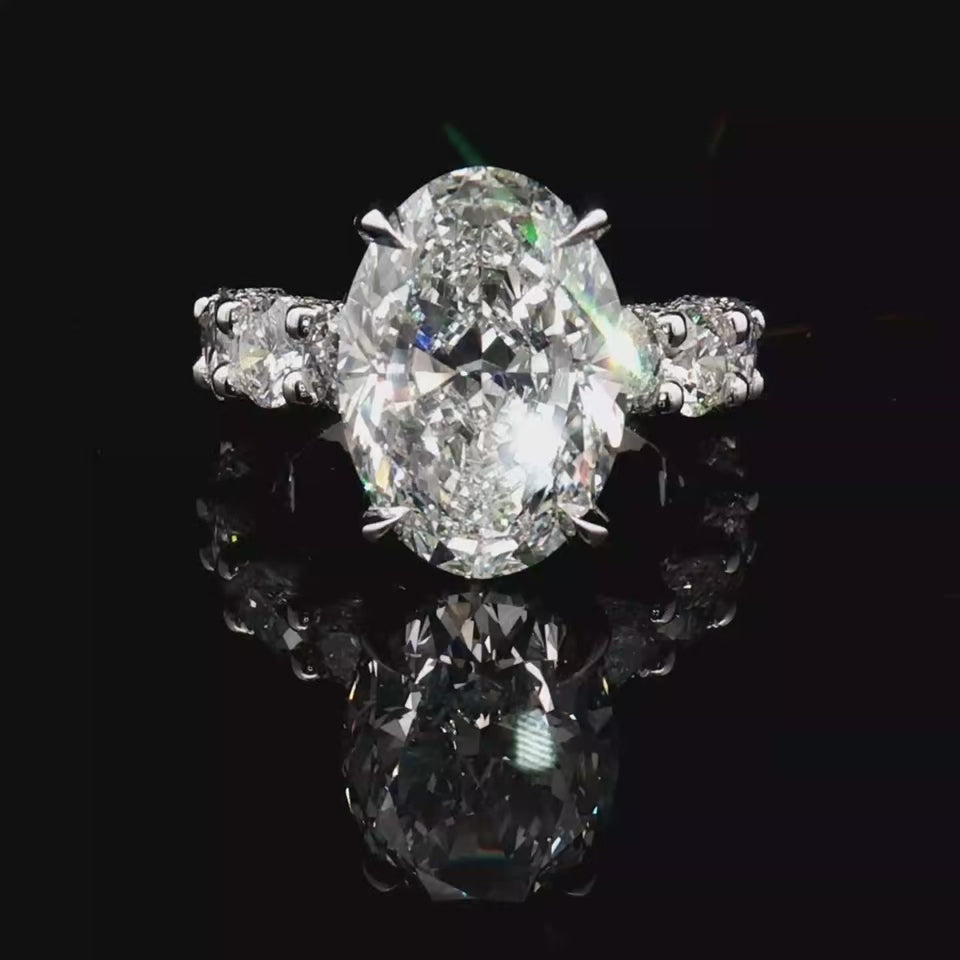 7.5 Carat Oval Cut with Round Brilliant Sides Engagement Ring